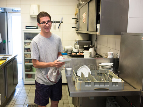 „Ich möchte mit Menschen arbeiten und selbständig Aufgaben erledigen. Das habe ich erreicht. Ich habe meinen Traumjob gefunden.“ Wenn der 20-jährige Dennis Tecklenburg von seiner Arbeitsstelle als Küchengehilfe sowie Kellner im Restaurant eines großen Möbelhauses erzählt, strahlt der junge Vorarlberger übers ganze Gesicht. Vier Tage die Woche arbeitet er im Betrieb, jeden Freitag ist Seminartag.